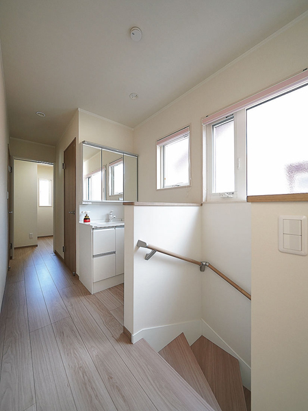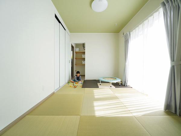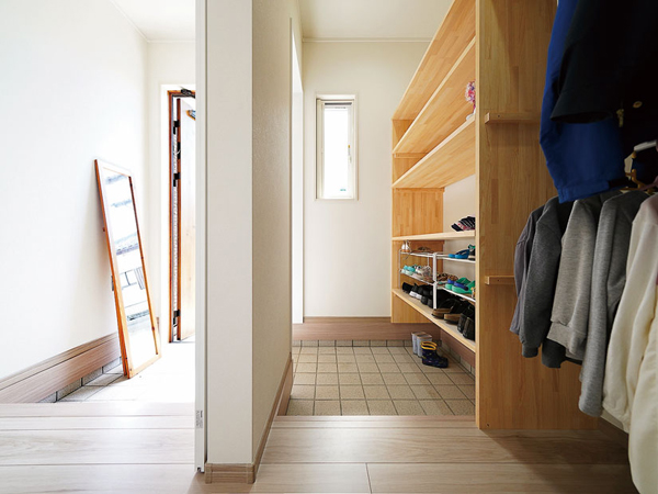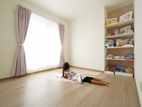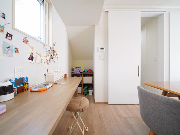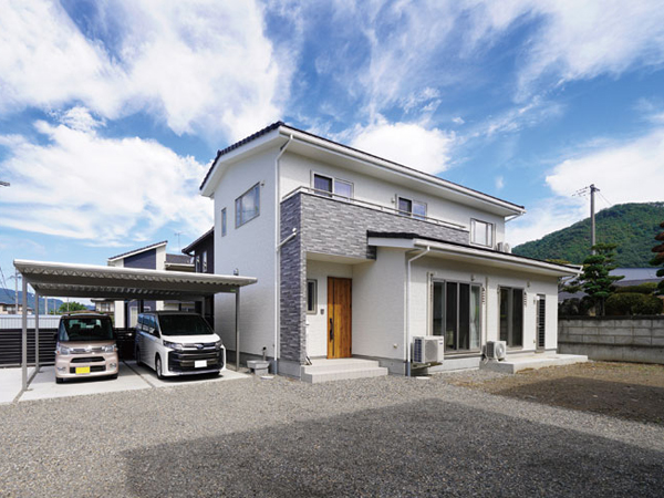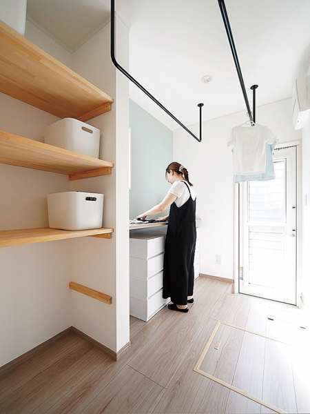 「実用的で暮らしやすく、家族の時間を大切にできる家が欲しかったんです」と話すのは奥さま。ともに公務員で、家事育児・仕事を両立させるご夫妻にとって、暮らしにゆとりを持つことは大きなテーマだったという。土地紹介を経て建築を依頼したのは、兼ねてから縁のあった更埴建設。計画にあたり、動線や収納、ランドリーや多用途の和室、子ども部屋の書棚など、今と未来の実用に沿った様々なリクエストをしたという。「インスタで目に留まったものは、都度担当の西澤さんに相談。意図や目的を汲み取り、常に最適解に導いてくださいました」。