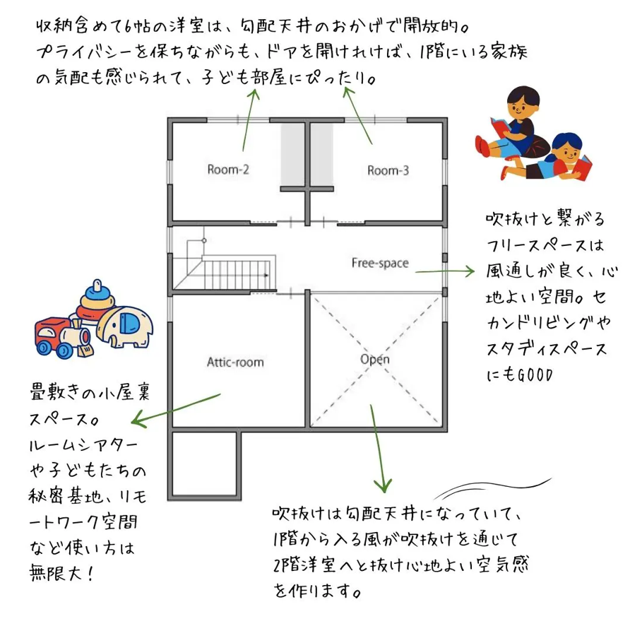 ・屋根裏空間は遊び心をプラス