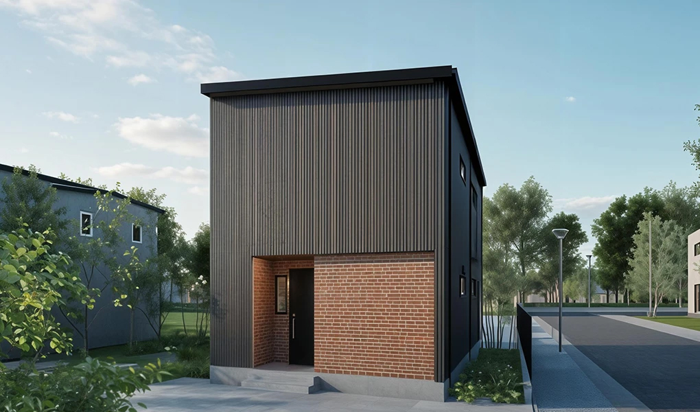 鉄骨階段の手摺や窓枠などにブラックを取り入れてアクセントにしています。