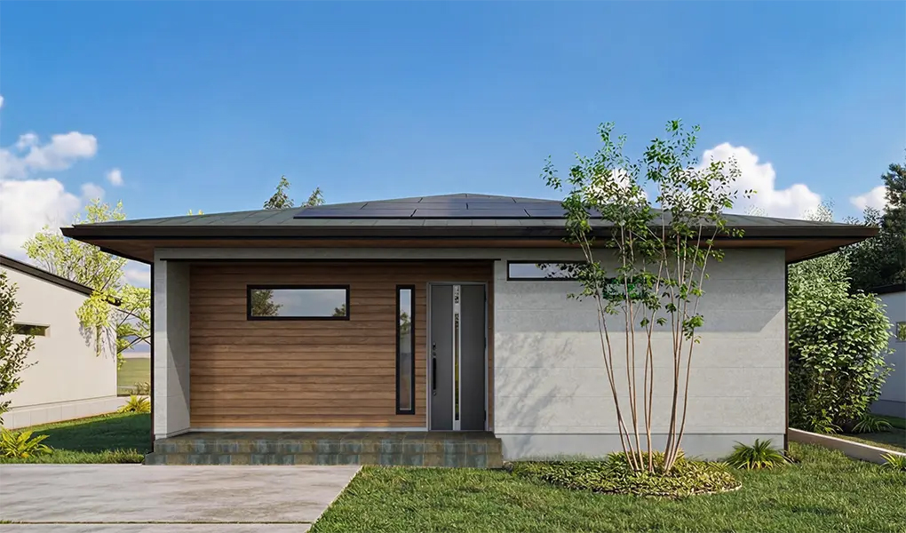 約900mmの軒の出が水平ラインを強調する外観デザイン。