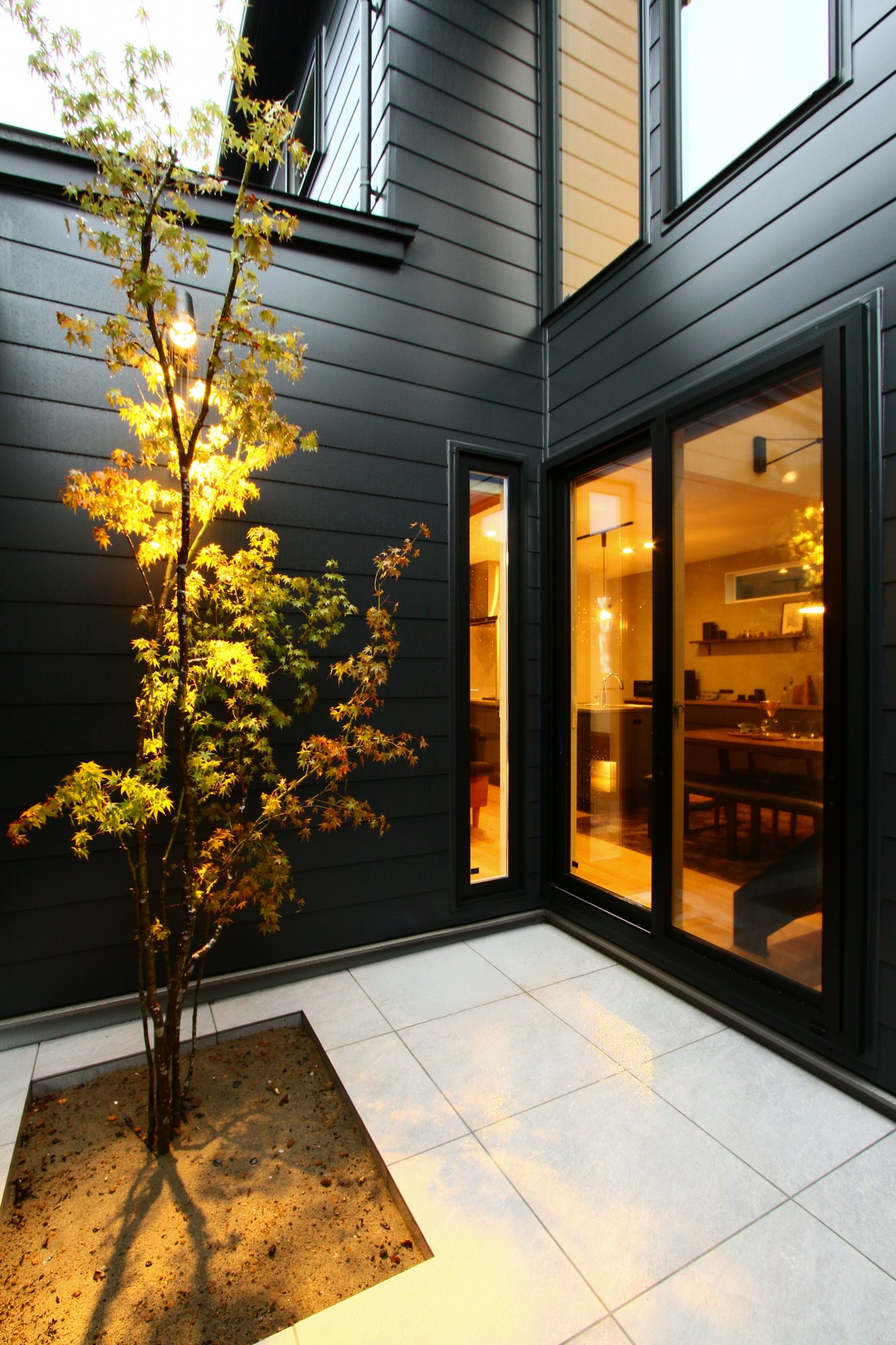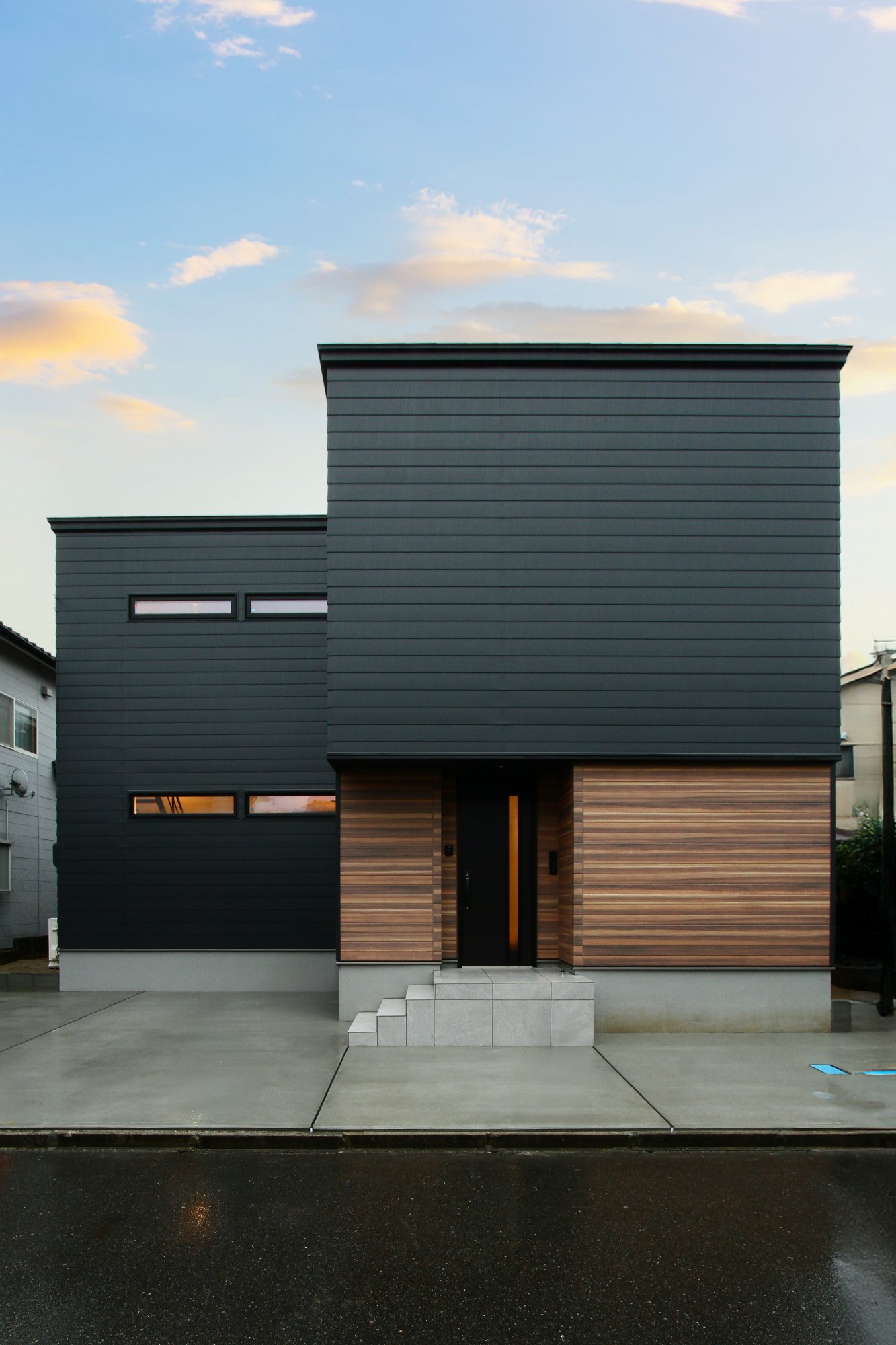 外観もブラックと木目調外壁を合わせて、内装とトータルコーディネートしています。