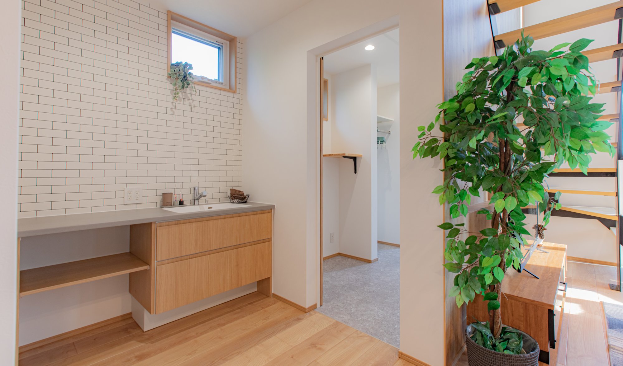 内観はリアルな木目調をふんだんに使用し、トイレや造作洗面化粧台のデザインにもこだわったナチュラルテイスト。