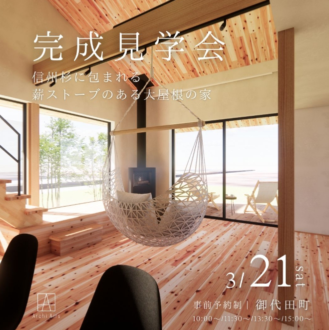 【3/21(土)|御代田町】信州杉に包まれる 薪ストーブのある大屋根の家ー完成見学会のお知らせ