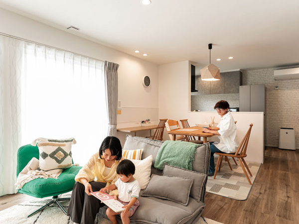 その後自身の家づくりが決まると、すぐに同社へ。「自分たちにちょうどいい」とジャストピアハウスの大きな吹き抜けのあるプランを選んだ。「担当の古田さんがまたすばらしくて。我が家をつくるかのように、自ら動いて提案してくれました」。色決めや付帯設備、地盤改良方法など、プロ目線のアドバイスや提案は多岐に渡ったという。「この会社にお願いしてよかった、と心から思います」。
