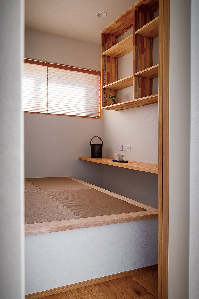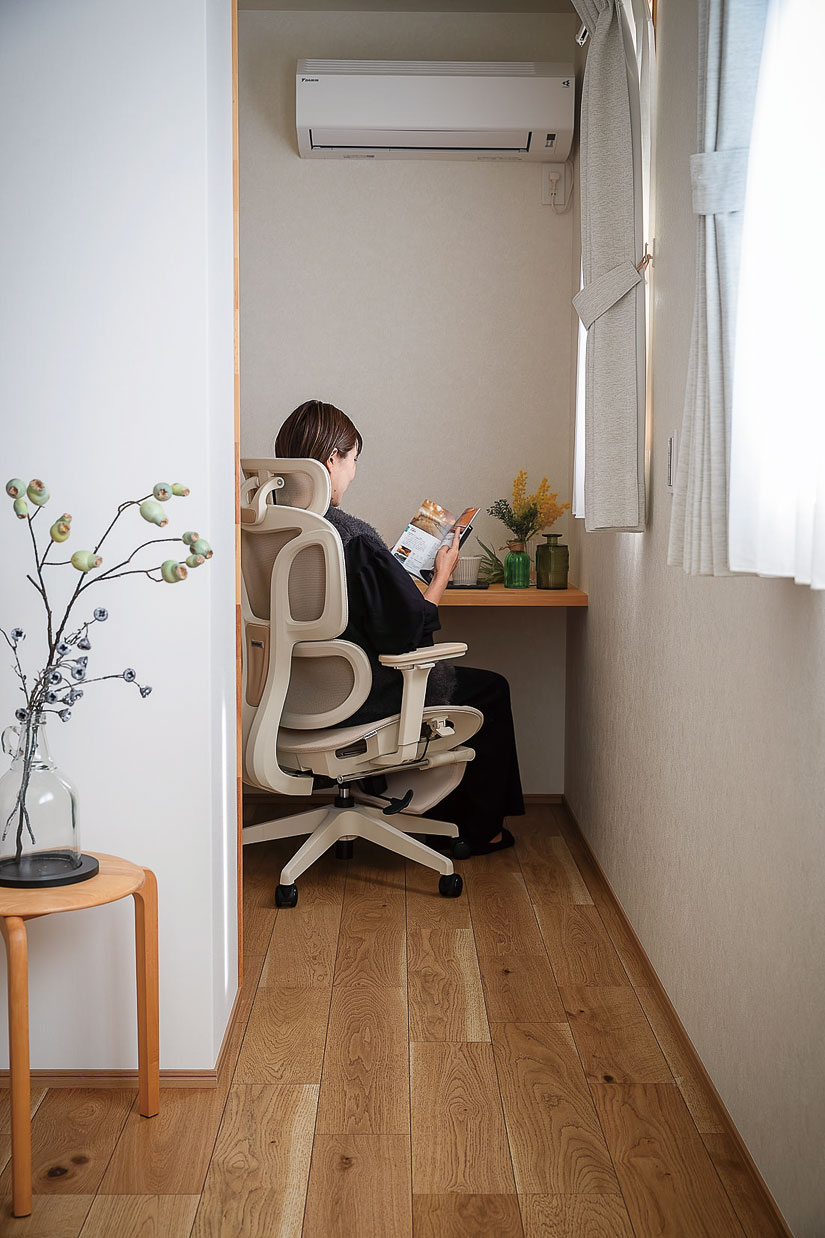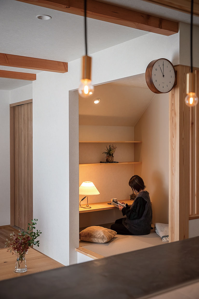 完成したのは、自然素材をふんだんに使った暖かく快適な家。WB工法ならではの空気の循環で室内の空気を心地よく整え、家族の健やかな暮らしを支えている。家族が集まるLDKは日当たりの良さを重視した。「みんなが集まる場所だからこそ、少しこもって落ち着けるようなスペースも欲しいよね」と話し合い、和室の小上がりを設けた。休日はお父さんやご主人が料理を担当することも多いそう。そんなライフスタイルに合わせて「大人が3人並んでもゆったり使えるように」と、キッチンまわりは十分な広さを確保した。 家族全員の思いと理想を実現したTさん家族の家。木の香りに包まれたこの住まいには、家族の未来と穏やかな暮らしが静かに息づいている。(ナガノの家vol.25(2025年12月25日発売号)掲載)