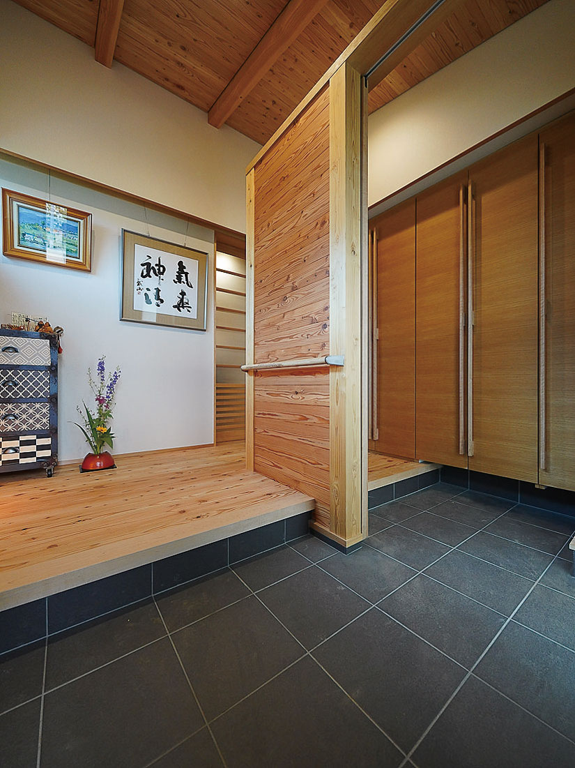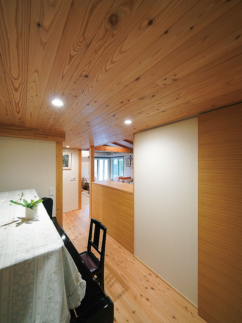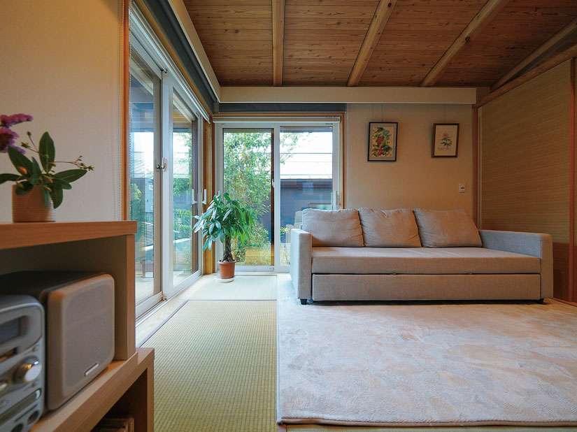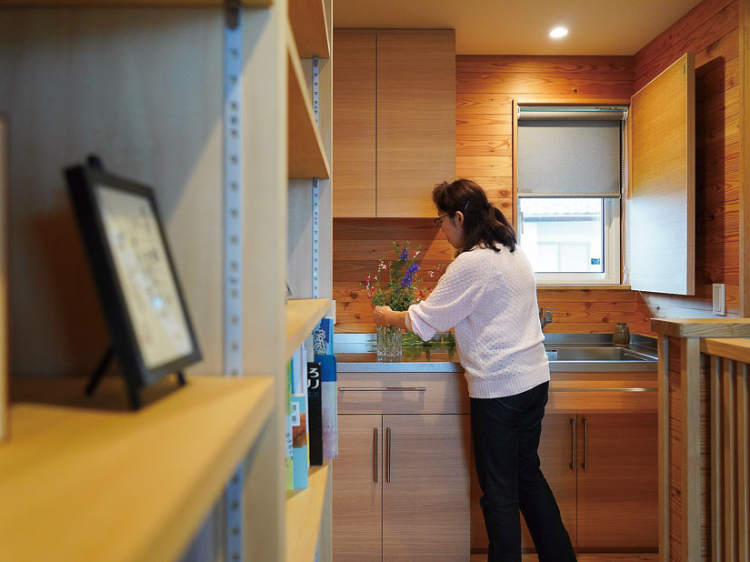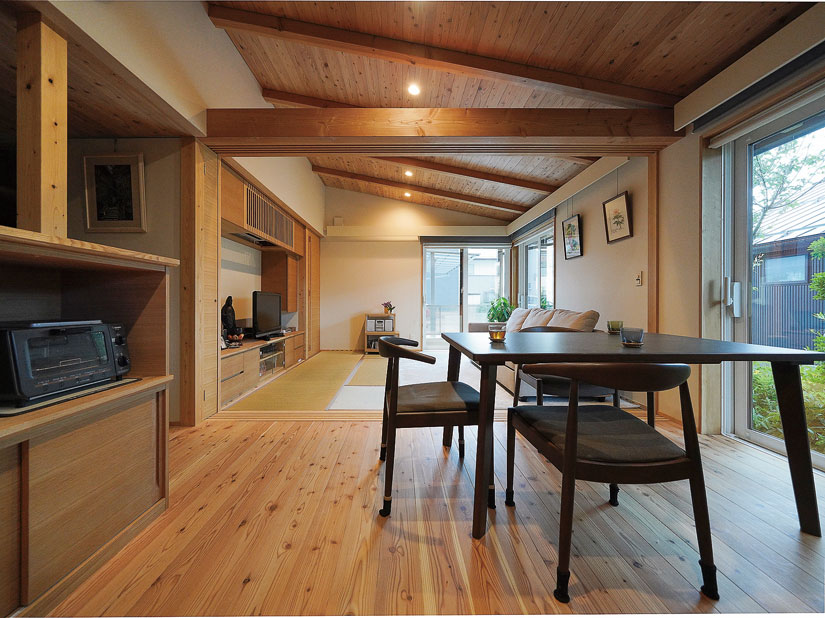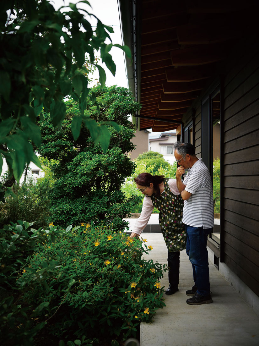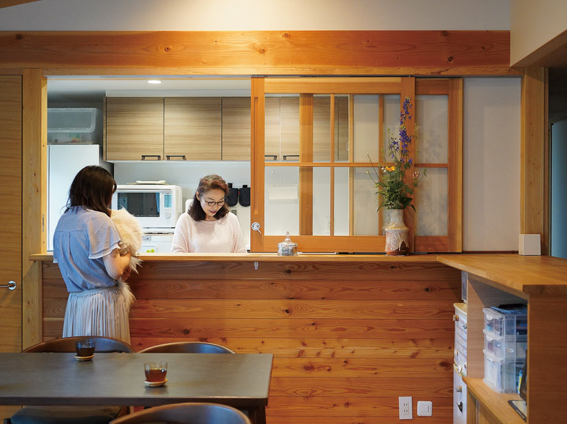 「来た人にくつろいでもらえる家にしたくて」と話すのは奥さま。事あるごとに家族や親戚が集ってにぎやかに過ごしていたが、近年は老朽化が気になっていた。「とはいえ、接道の関係で建て替えは諦めかけていて」とご主人。ところが長坂建設に相談し始めたタイミングで隣地造成の話が持ち上がり、思いがけず建て替えが叶うことに。「長坂社長が方々に掛け合ってくださったおかげ。ありがたいですね」と振り返る。