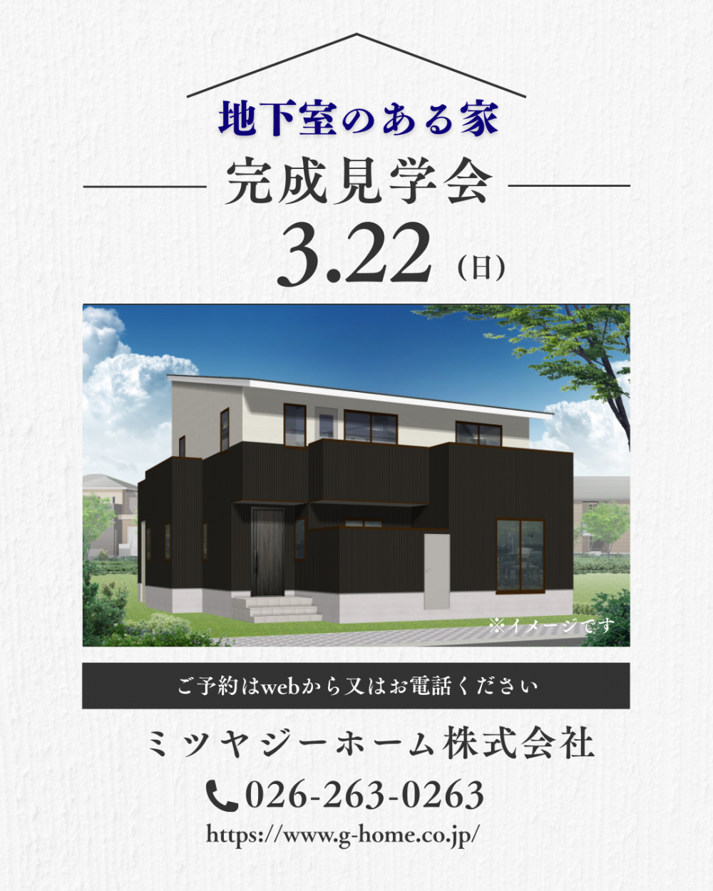 3/22(日)「地下室のある家」完成見学会開催(長野市)ご予約受付中!