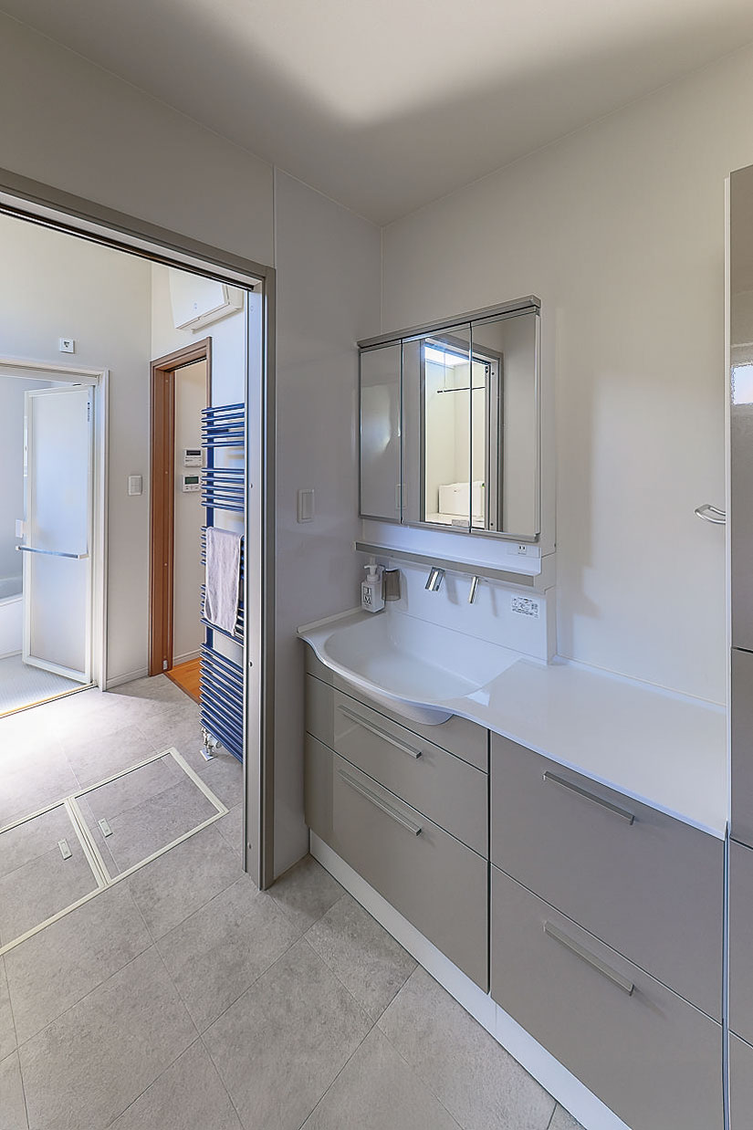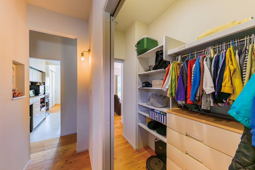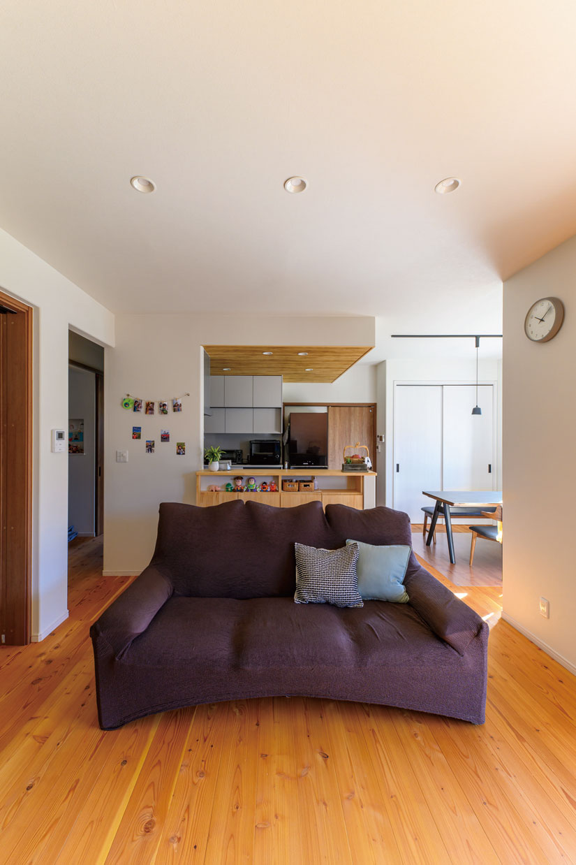 おふたりがそれぞれに思い描いていた理想は明確。仕事、子育て、家事にと毎日フル回転の奥さまは「家事動線がスムーズな家」を、ご主人は「老後になっても過ごしやすい家」を希望。現在の便利さに将来を見据えた設計を加え、永く暮らすのにふさわしい配慮がそこかしこに詰め込まれている。