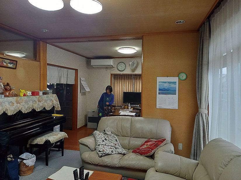 廊下とリビングを隔てていた壁、ダイニングとの仕切りを取り除き、広々と伸びやかなLDKが誕生したM邸。お子さんたちの巣立ちを機に、4年ほど前からリフォームを考え始めたご夫妻。「寝室のある2階にトイレが欲しい。浴室を暖かくしたい」。そんな希望を叶えるため、リフォームを決断。パートナーには親戚の家を手掛けたフルハタ建設を選んだ。