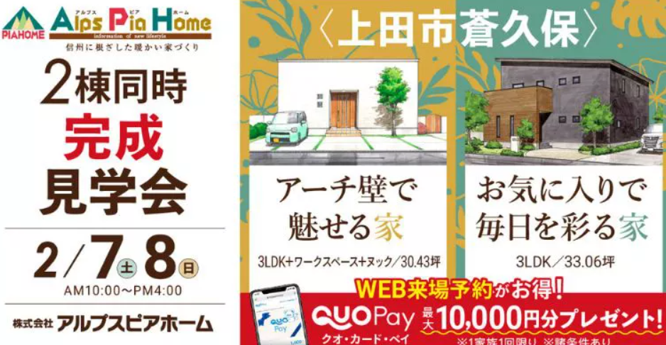 2/7(土)・8(日)【上田市蒼久保】にて2棟同時完成現場見学会を開催します!