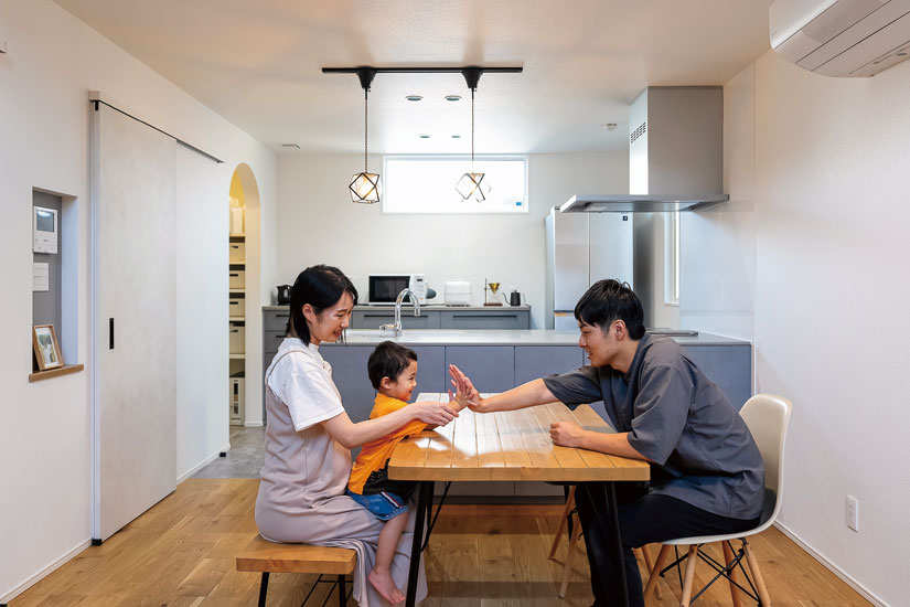 最初は展示場へ行くことに気乗りしなかったというご主人。あづみの住宅公園内にある「株式会社アルプスピアホーム」のモデルハウスには、奥さまに連れて行かれるようにして訪れたそう。しかし、同社のシリーズ「ヴィサージュ」のL字型に配したLDKの雰囲気や、水まわりなどの選択肢の多さが気に入り即決。家をまるごと覆うような高断熱と24時間熱交換換気システムの話を聞くうちに、ご主人の頭の中には住まいのイメージが出来上がった。