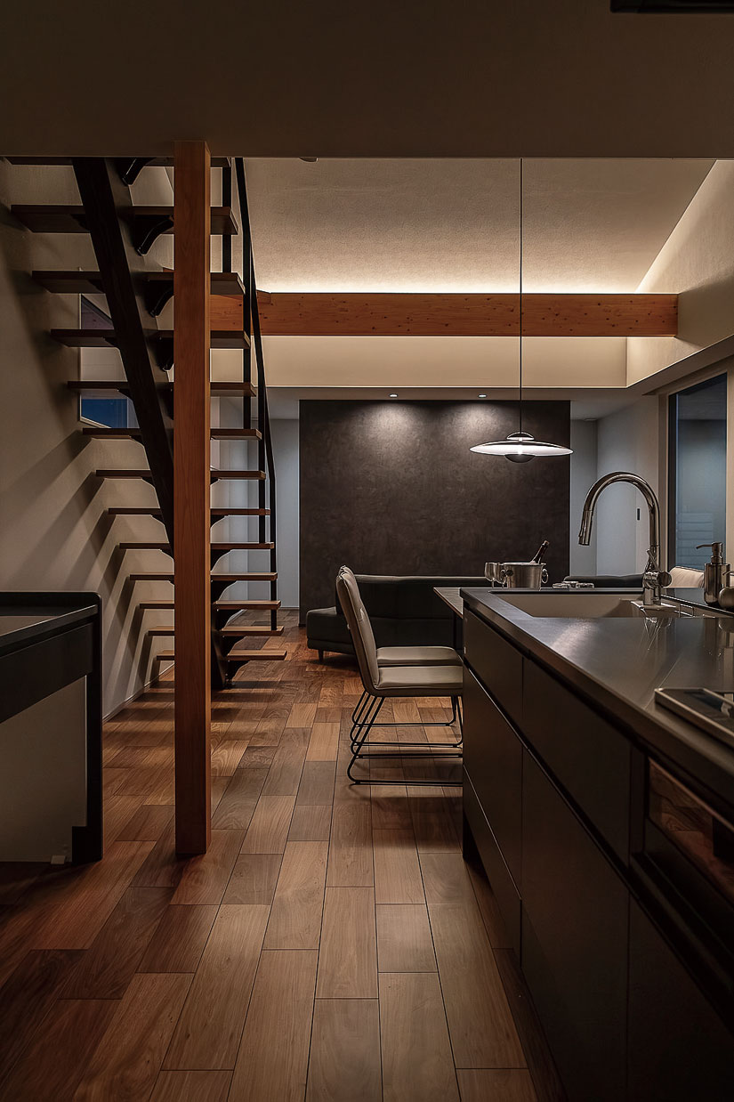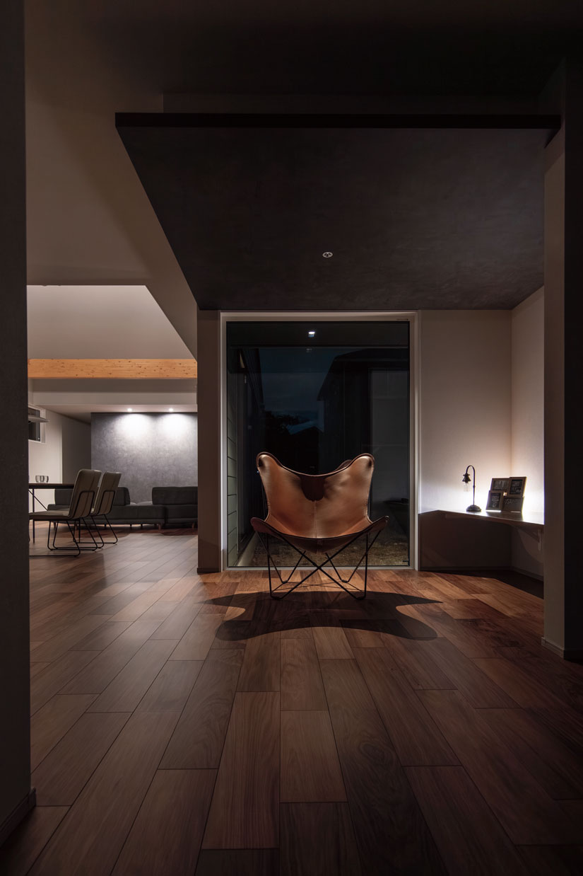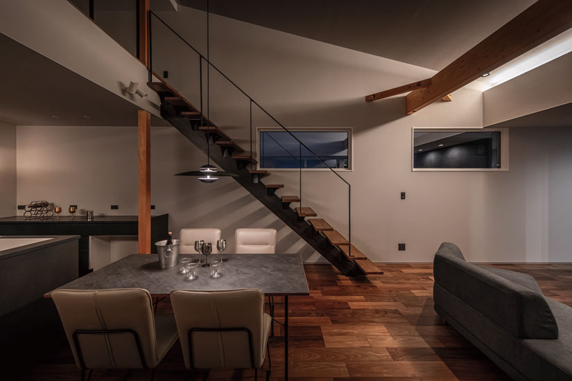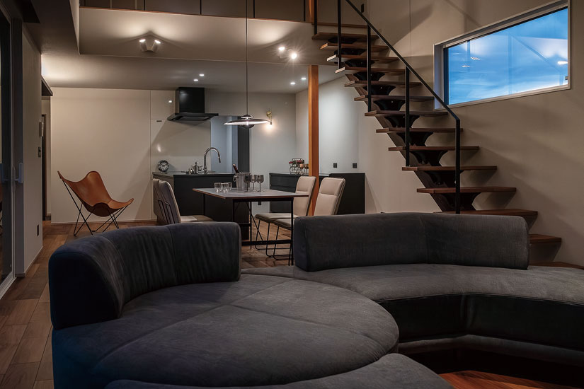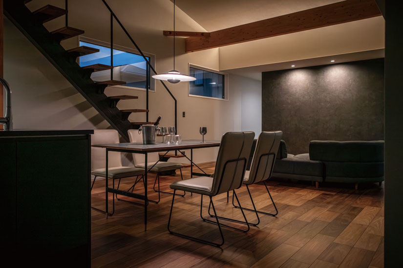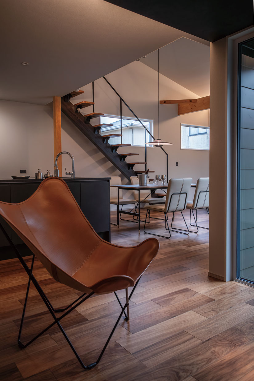 スタイリッシュなデザインとインテリアが調和し、上質な居住空間を実現。「高気密・高断熱の住まいは真冬でも厚着いらずで、軽やかに暮らせるようになりました。全館床暖房は足元から暖かく、放射冷却が起こる深夜から明け方にかけても冷え知らずです」
