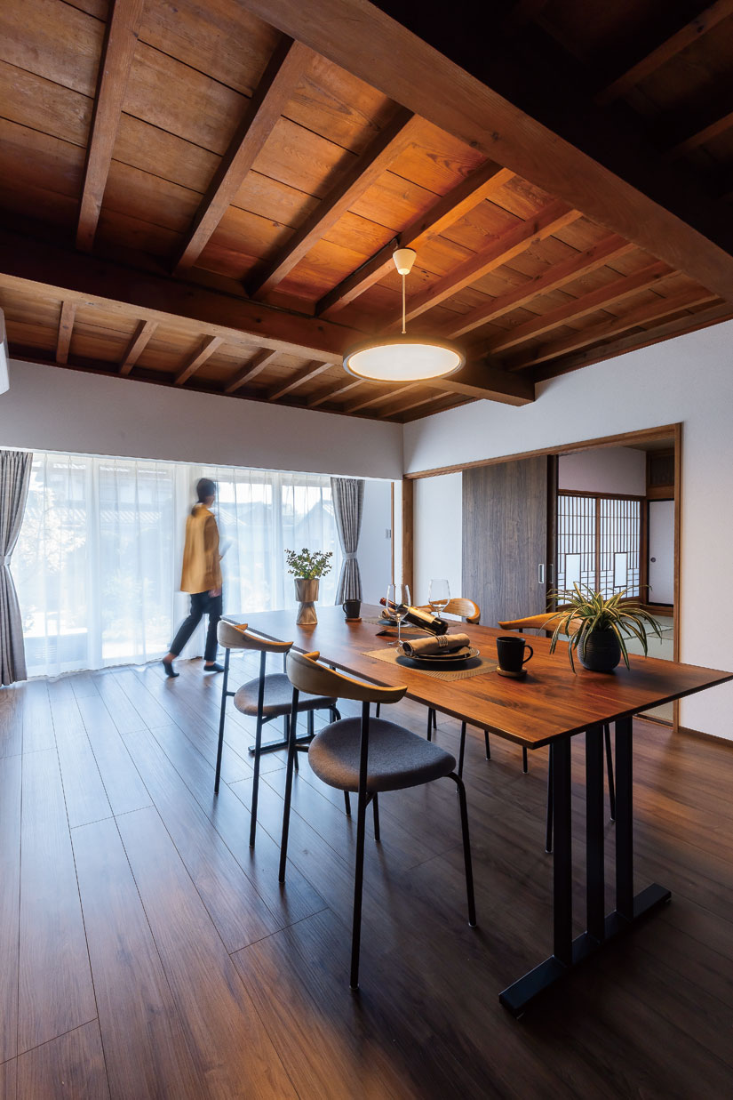 ペルソナとして据えたのは、休日は家族の時間を大切にしつつ、それぞれの趣味を尊重し合って過ごす4人家族。例えば会話しながら楽しく食事ができるよう、キッチンやダイニングはほど良いゆとりを意識し、家事動線もしっかり確保。家全体に漂うモダンなデザインに合わせた、スタイリッシュなインテリアにも注目したい。性能面では、木造軸組工法に高性能なスーパーウォールを組み込んだSW工法を採用し、耐震等級3、断熱等級6という高い基本性能を実現。「これからの家」を意識してハイスペック住宅用の全館換気空調システムも取り入れ、省エネ・低燃費で全館心地良い空間をキープしている。