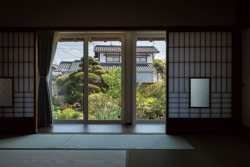 時の流れとともに住人が減ったため、家をコンパクトにする減築を希望。一番のこだわりは暖かさで、居室全体を断熱材で囲み、サッシにはペアガラスを採用。天井の断熱材は厚みを付加し、気密性もアップさせた。居住エリアから離れていて不便だったトイレと浴室は、レイアウトを一新してリビング近くへ。「一方、母が保存を希望したキッチン脇の味噌部屋はあえてそのまま。座敷の書院窓や欄間など、現在では再現が難しい建築要素はできる限り残すなど、家族全員が満足できるよう計画を進めました」とSさんは話す。