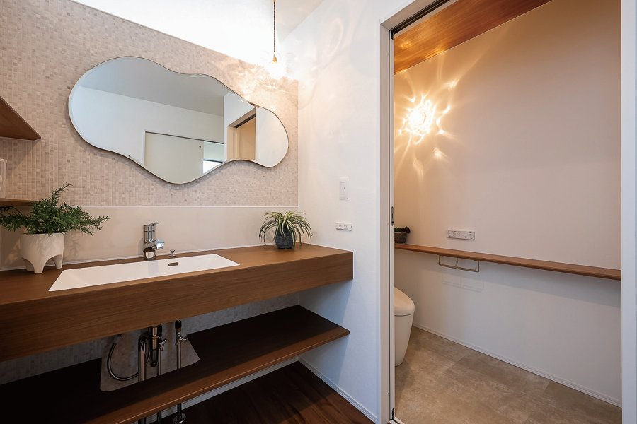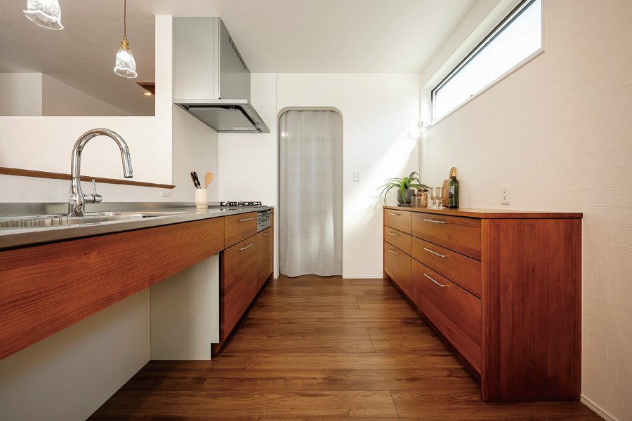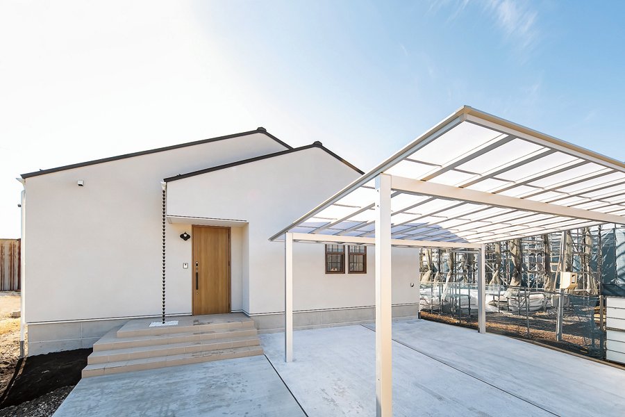 末永く安心して暮らせる家をと考えたご夫妻。「歳を重ね、車を運転しない日が来てもアクセスしやすい場所が条件。ハザードマップもしっかり確認しました」と奥さま。平屋を希望したのも、シニアになっての暮らしやすさを考えてのこと。数十年先まで見据え、堅実な家づくりを進めていった。「この土地は勾配があり、造成に時間が掛かりましたが、その間熟考できたのが幸い。本当にやりたいこと、そうではないことを落ち着いて吟味できました」と振り返る。