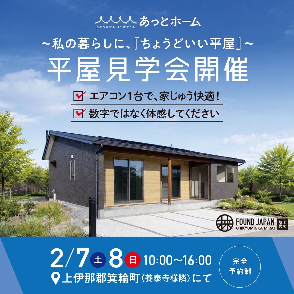 上伊那郡箕輪町(養泰寺様隣り)にて平屋の見学会開催します