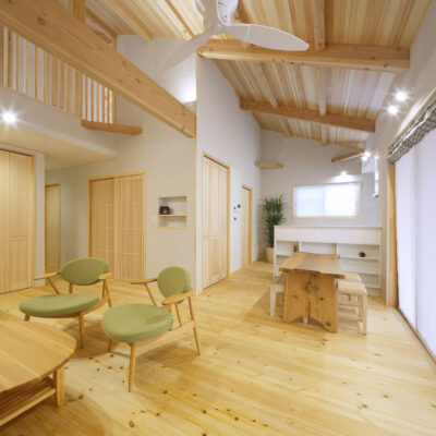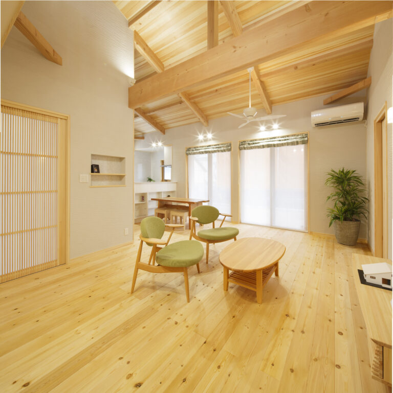 無垢材をはじめとした自然素材を使用し、木のぬくもりややさしい空気感を感じられる住まいです。