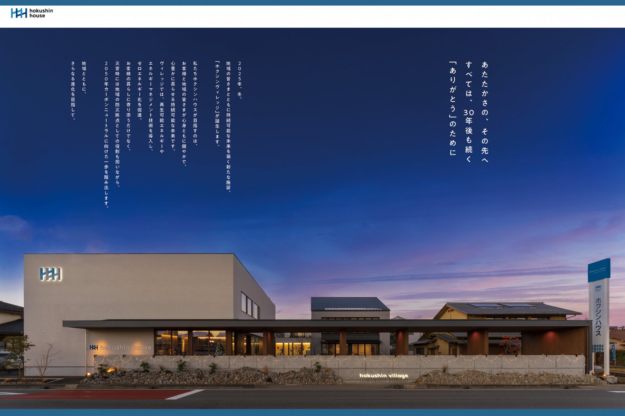 私たちホクシンハウスが目指すのは、お客様と地域の皆さまが心身ともに健やかで、心豊かに暮らせる持続可能な未来です。