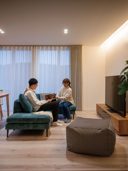 結婚が決まり、自然な流れでマイホームの検討が始まったTさんご夫妻。双方が実家暮らしで「せっかく住居にお金をかけるなら将来の資産になる選択を」と、20代という若さで住宅の購入を決意。コロナ住宅との出会いは知り合いからの紹介で、性能の高さと職人の質の良さに、興味を持ってモデルハウスに足を運んだ。「最初はこの年齢で家を建てられるのか不安もあった」と振り返るご主人。いざ相談をしてみると資金計画にも丁寧に対応してもらえ、加えて耐震や多機能な外壁材ヘーベル+ダブル断熱など性能の高さを聞いて納得。「2人とも寒い家は絶対に嫌だった」という奥さま、一台のエアコンで快適に過ごせる環境にはびっくりだった。