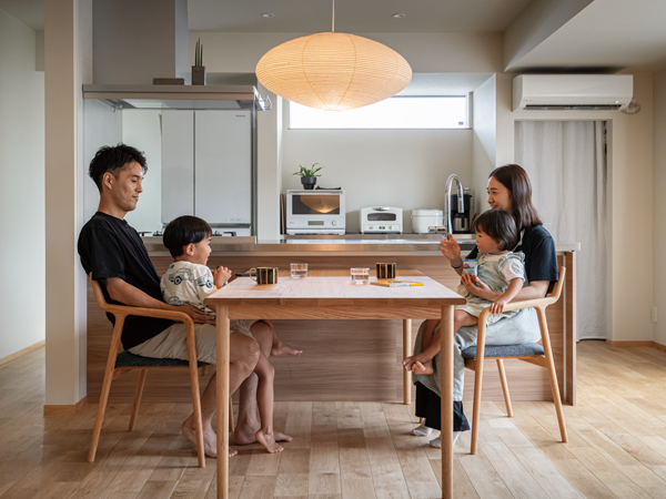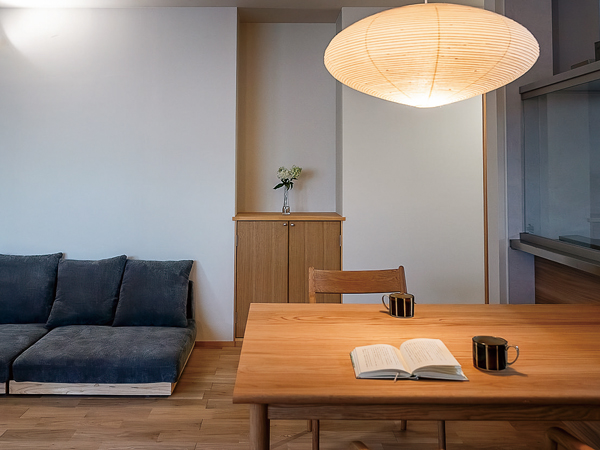 イサム・ノグチデザインの照明がインテリアのアクセントになることを前提に、ジャパンディスタイルで統一した。「最初は北欧スタイルを希望していましたが、年齢を重ねるにつれ和の趣きに癒しを感じるのではないかと思っています」とご夫妻
