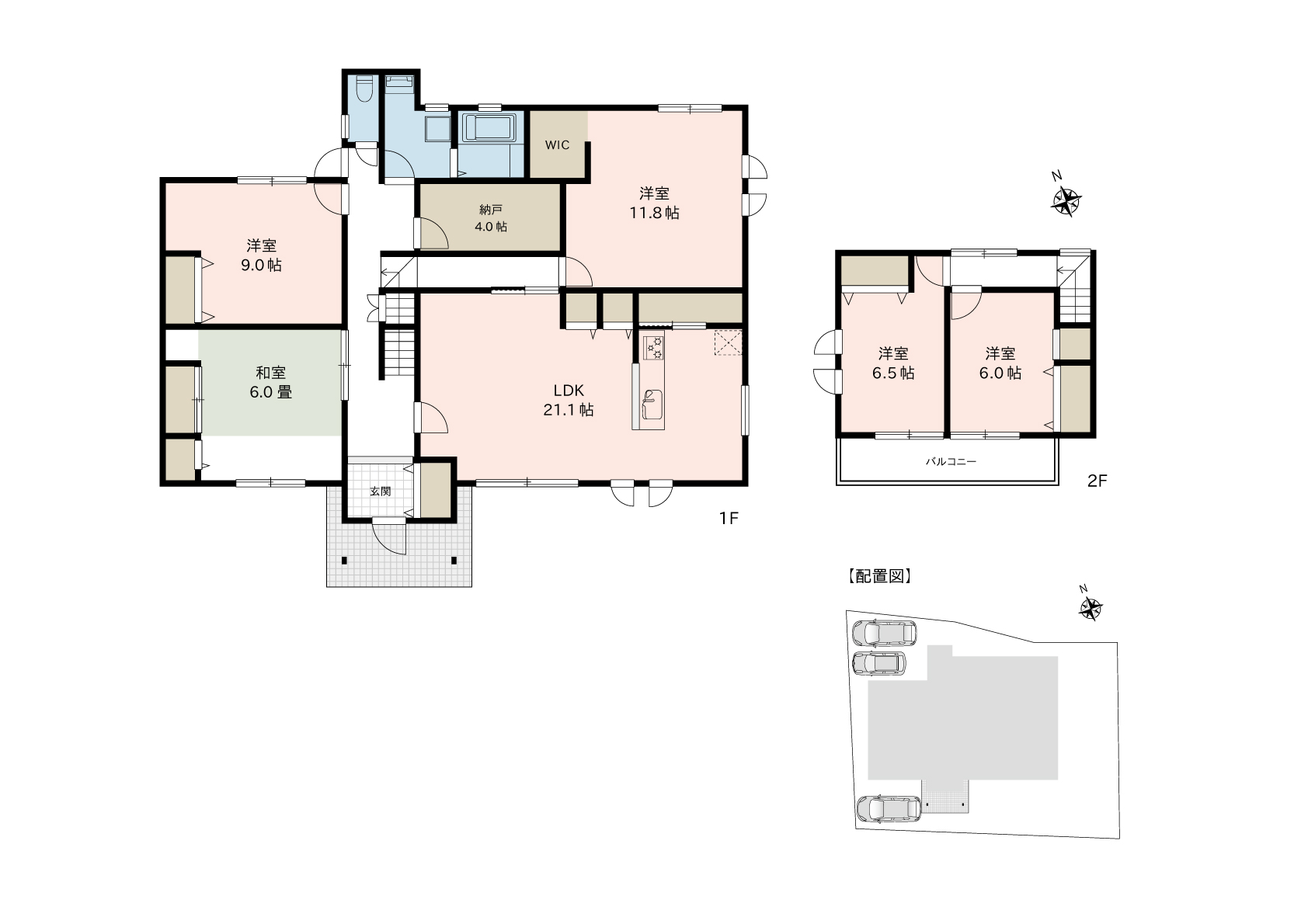 1F:約132.72㎡、2F:28.98㎡ 合計:約161.70㎡(約48.91坪) 木造瓦葺2階建 昭和39年2月築 昭和60年10月増築 5LDK+WIC+納戸 駐車可能台数3台 神川小学校(約400m)、第一中学校(約1.7km) 耐震基準適合住宅です。 (耐震基準適合証明書の発行には別途費用が必要です) |