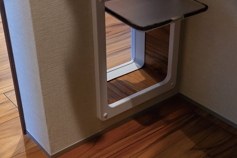 K邸の見どころは、天井高とスパンを生かした圧巻の大空間。木造住宅ながら柱や梁を抑えた構造に、同社の技術の高さが現れている。「天井材の収まりを室内外でそろえたり、猫用動線の部材を統一するなど、仕事がとにかく丁寧。毎日気持ちよく暮らせています」と奥さまもにっこり。設計意図を忠実に再現しながら暮らしやすさを磨いた住まいが、安曇野暮らしの日々を支えている。(ナガノの家 PREMIUM 2026掲載)